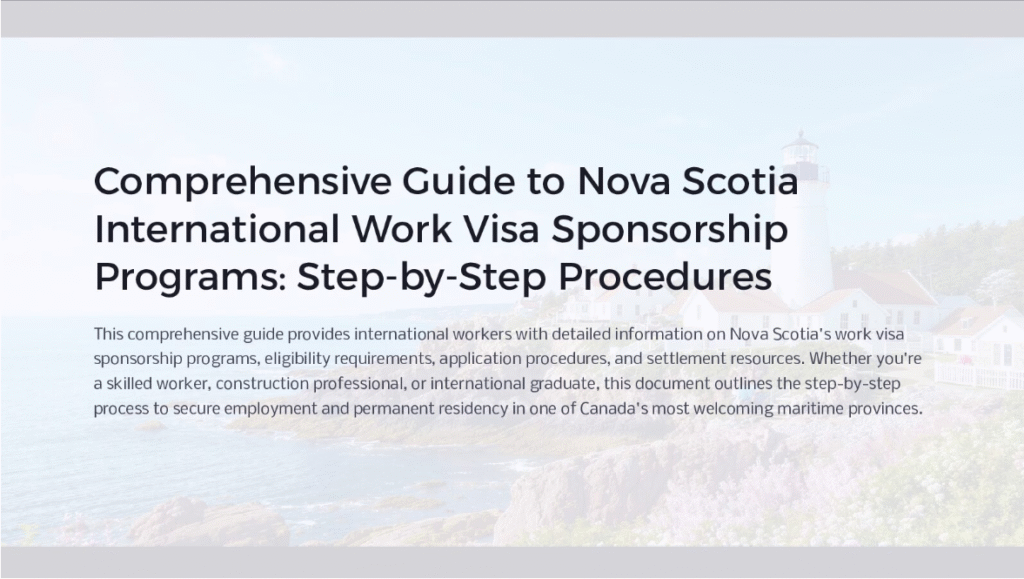 Comprehensive Guide to Nova Scotia International Work Visa Sponsorship Programs Step by Step Procedu