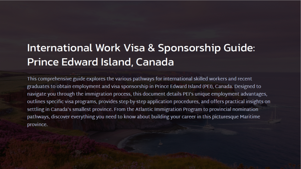 International Work Visa and Sponsorship Guide Prince Edward Island Canada
